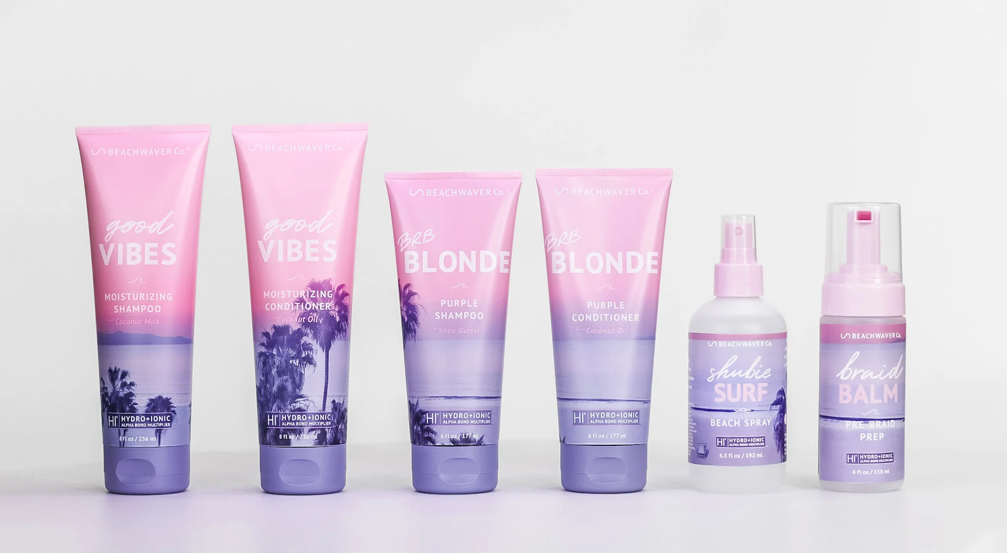 Responsible for developing the packaging design and logos for Beachwaver Co.® first ever vegan ingredient hair care line. Inspired by a pink sunset the packaging is lined up it reveals a Californian sunset. Lead Beachwaver Co. in house design team to execute all supporting assets from digital banner ads, social in-feed launch assets, e-mail marketing assets and printed marketing cards.